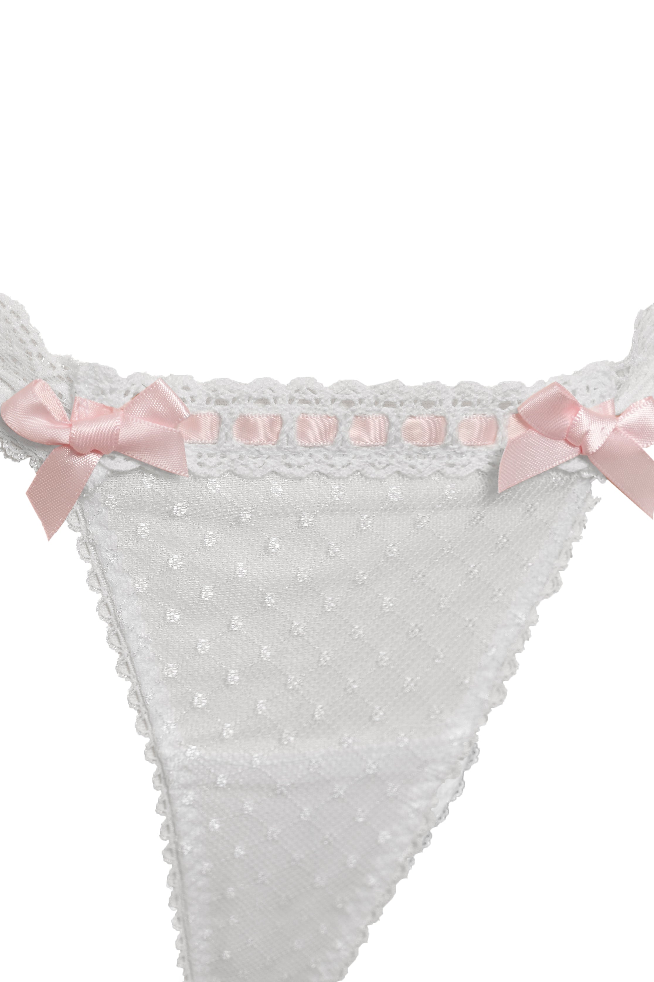 Soft and feminine, Venetia Lace Thong is crafted in delicate French lace and adorned with contrasting ribbon insertion lace. Style it with the Venetia Lace Corset for a touch of baroque femininity.