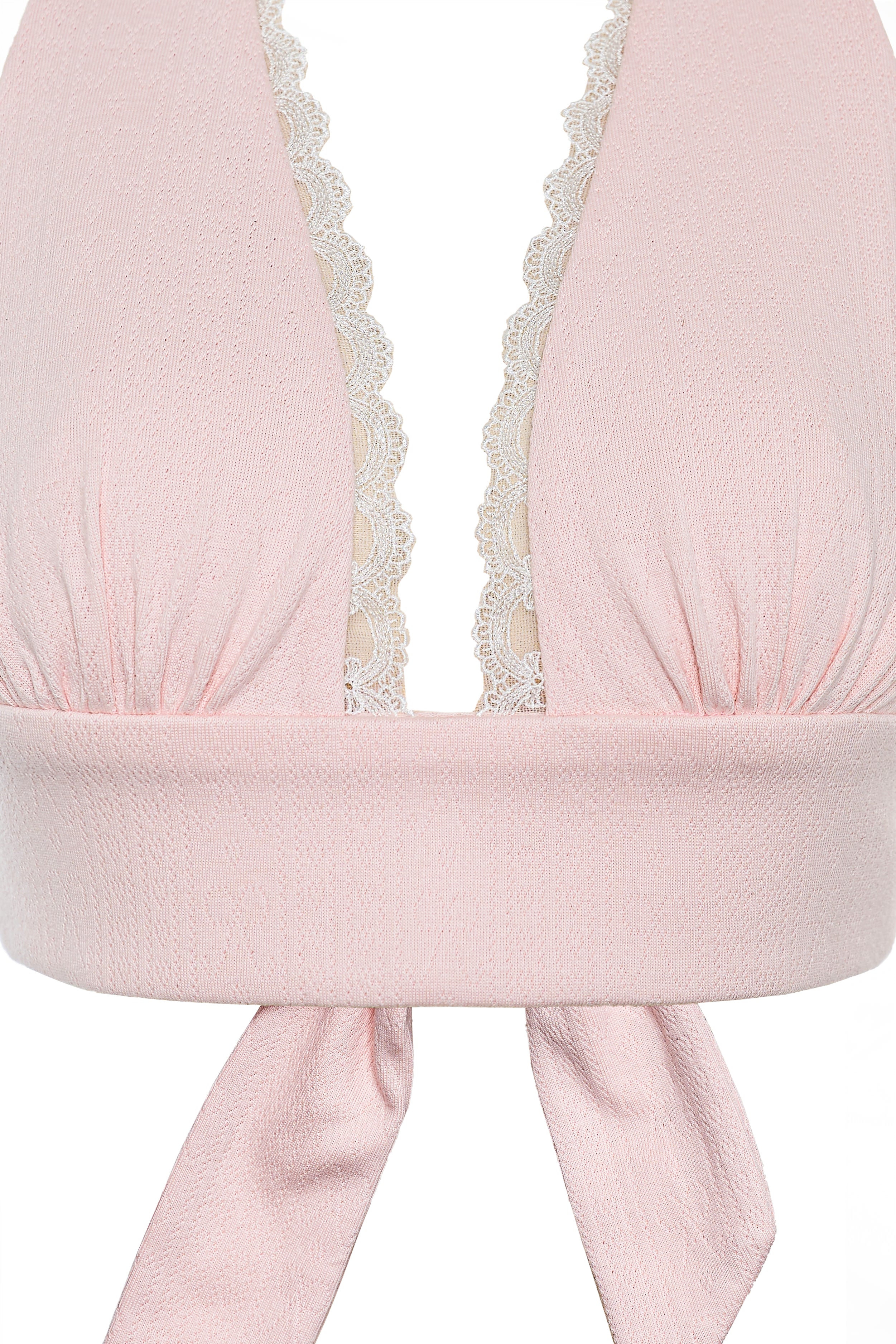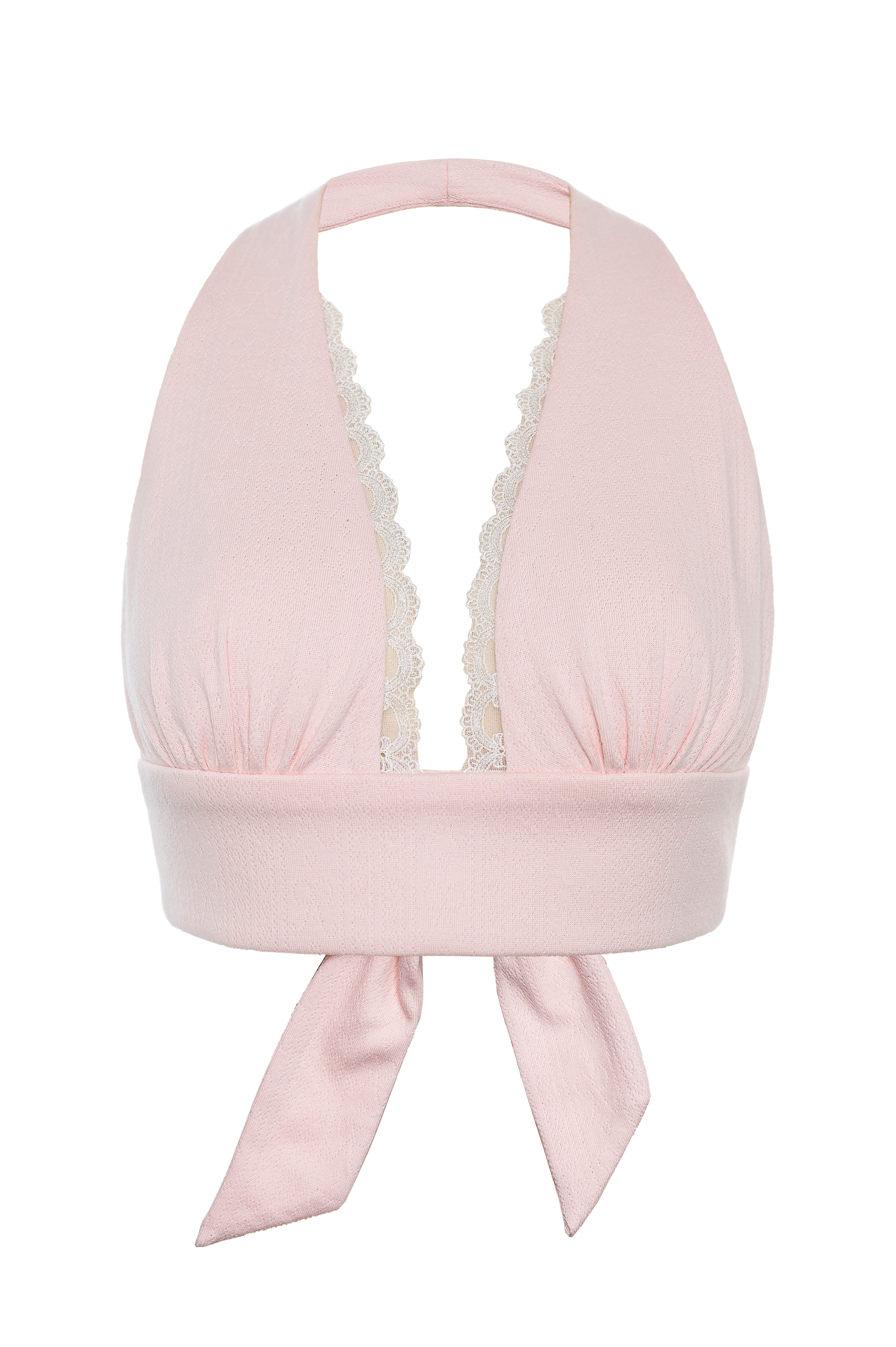 A quintessentially *femme* item, the Juliette Halter Top is detailed with an accentuated cropped waistband, a halterneck, lace trim and our signature bow detailing. Complete the look with the Juliette Ruffled Skirt.