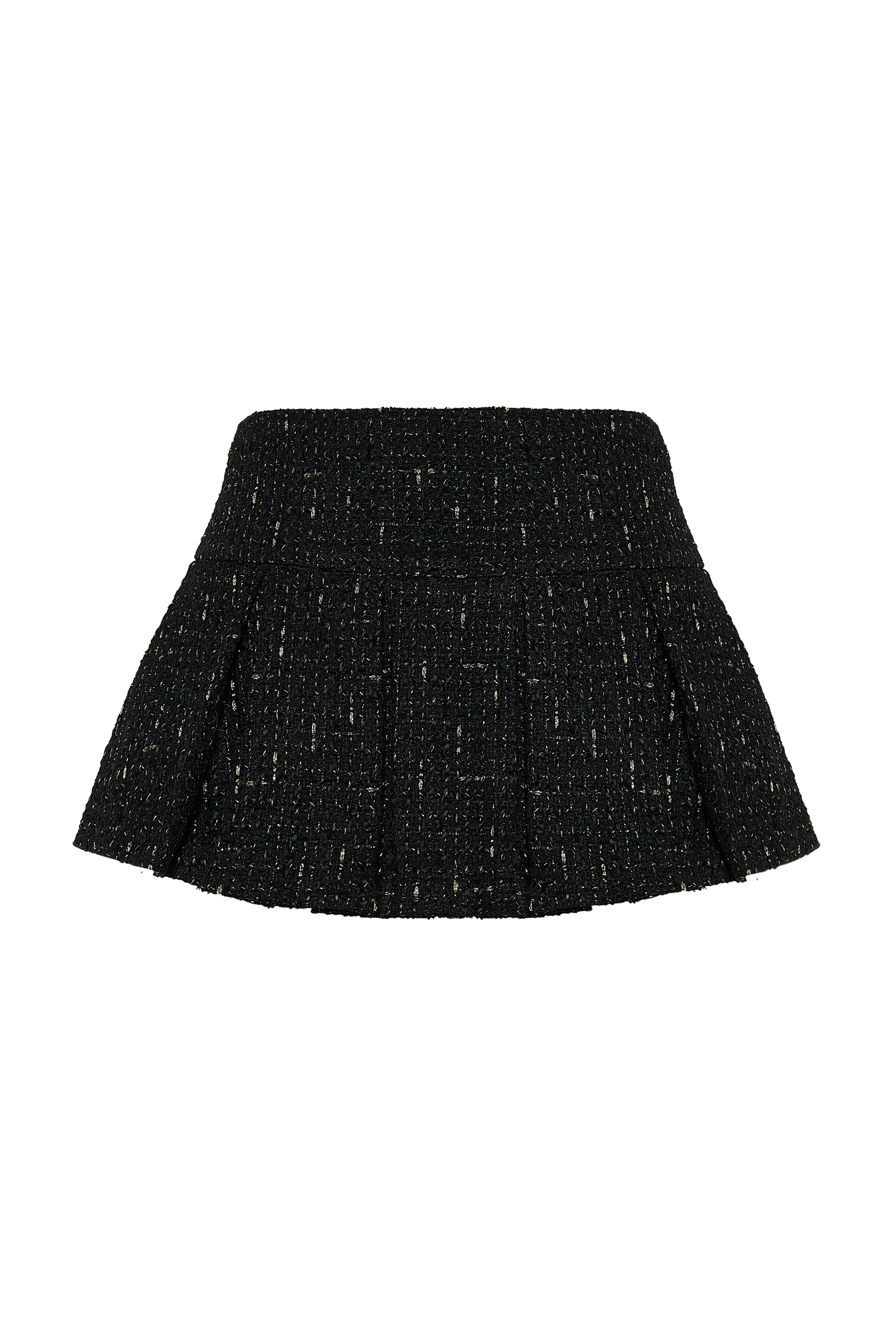 The Blair Skirt blends classic tweed with a modern, wearable silhouette. Designed with a sleek micro length and built-in shorts for effortless comfort, it creates a structured, flattering shape that pairs seamlessly with the Blair Corset. Perfect for evenings out, stylish brunches, or moments when you want a playful yet refined touch.