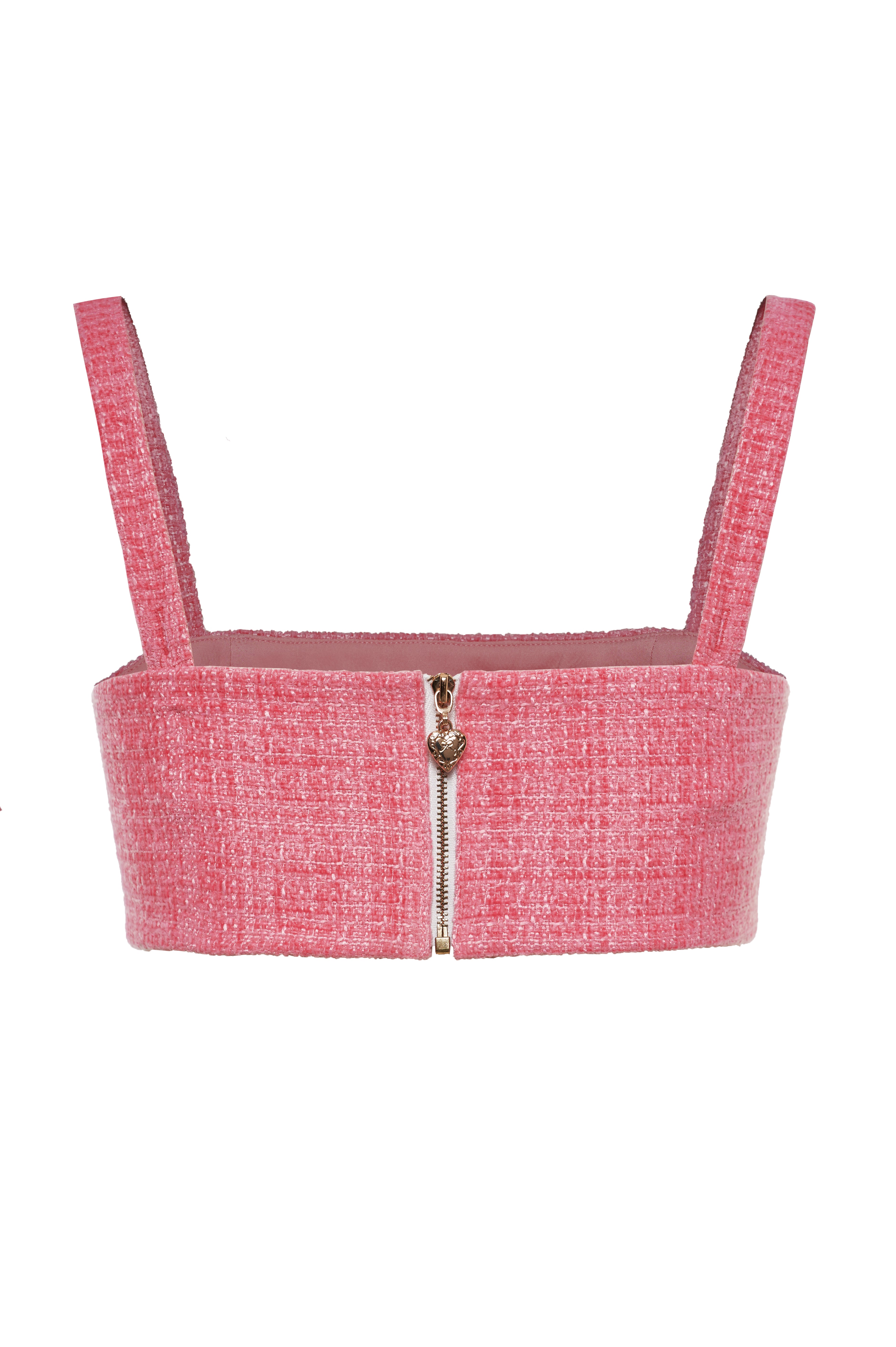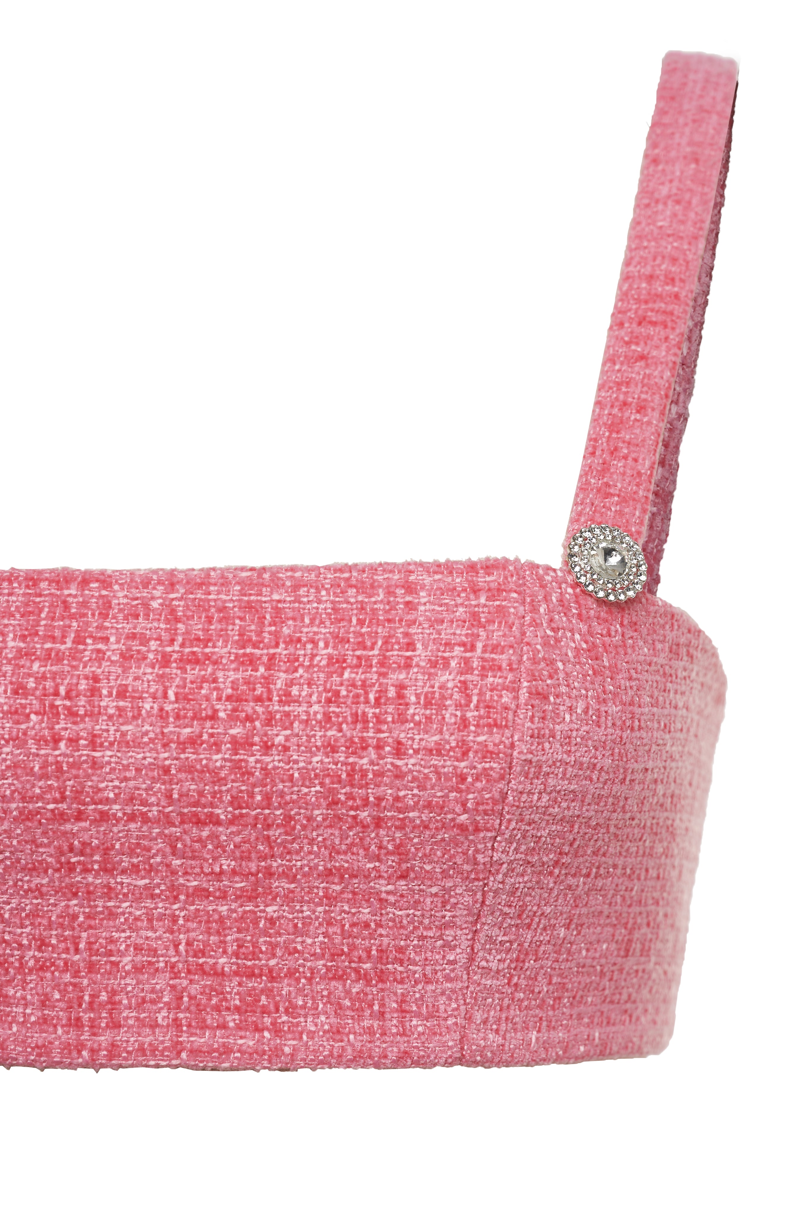 Add a touch of sparkle to your collection with the Diana Top, designed in a playful bubble gum pink that exudes fun and femininity. The top features stunning crystal embellishments on each strap, elevating the design with a touch of glamour and sophistication. Crafted for both comfort and style, it offers a perfect fit while making a bold statement. Ideal for adding a pop of color under any outfit or wearing as a chic statement piece on its own.