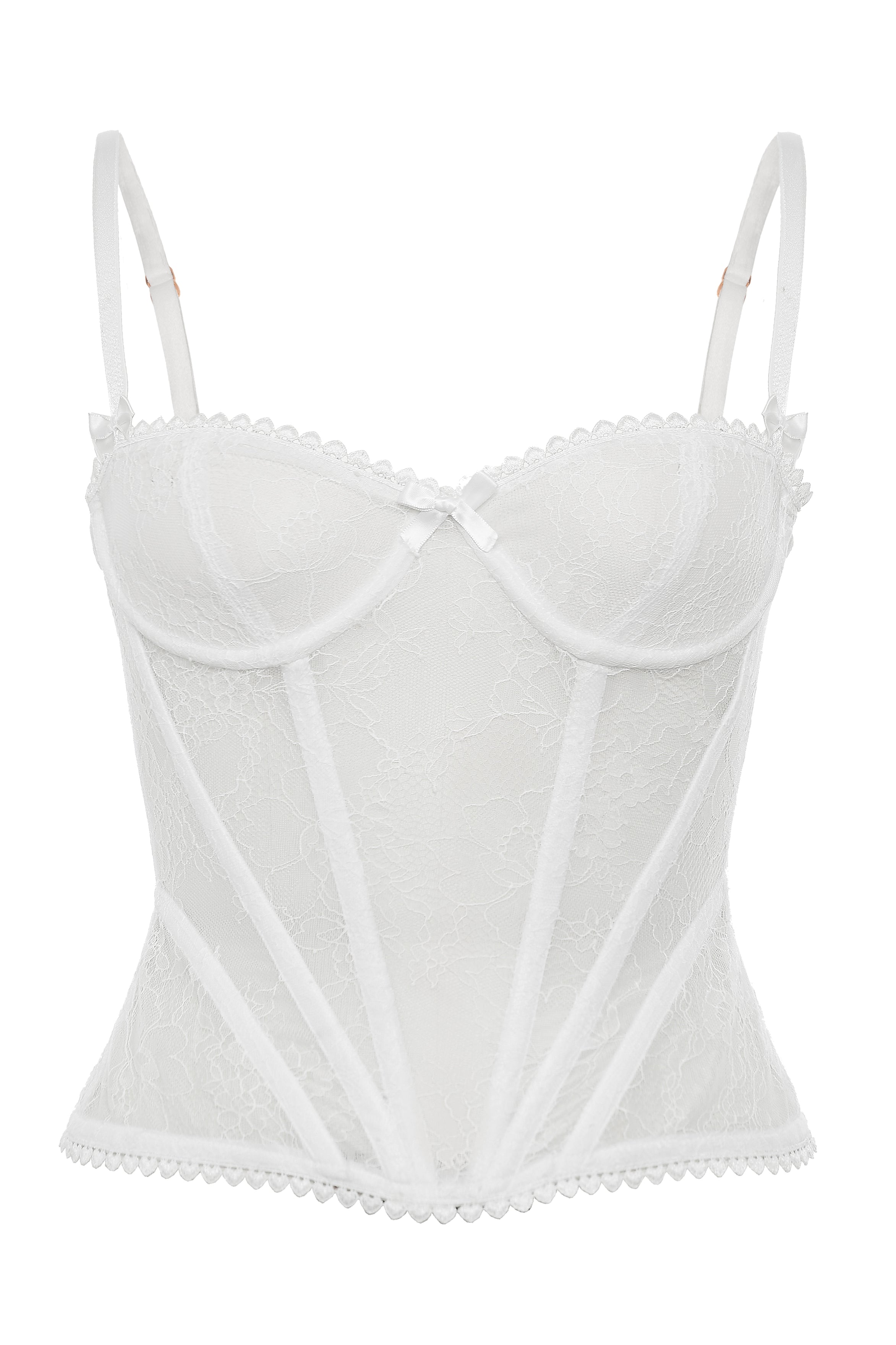 Fit for a lingerie princess, The Amora Lace Corset is a dreamy French lace piece featuring soft underwired cups, waist-accentuating boning, adjustable shoulder straps for a tailored silhouette, bow detailing, and a chic laced back detail. To complete the story, wear with the Amora Lace Thong and Cherub Ruffle Bloomers.