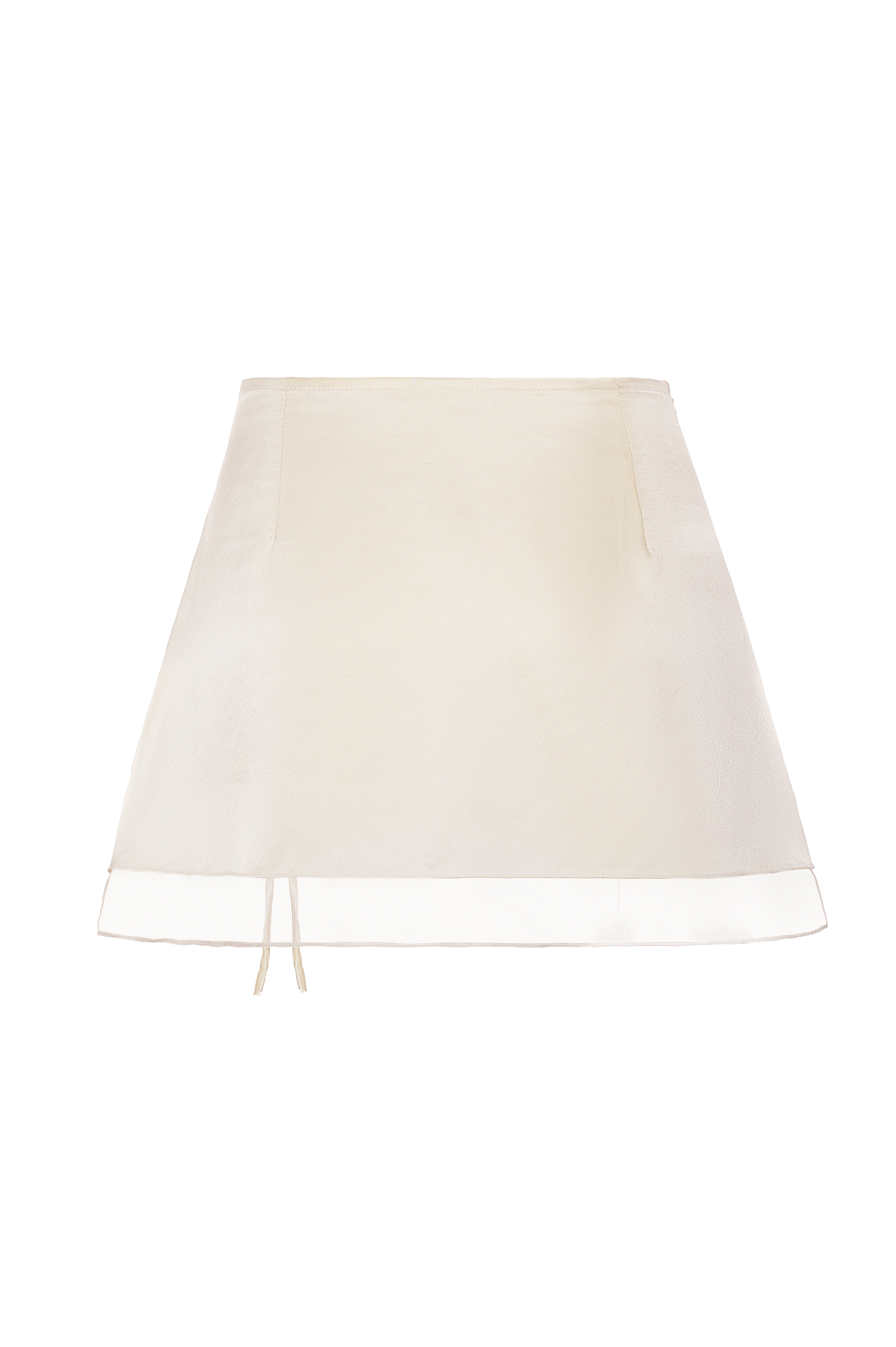 Introducing Aria, a sleek nod to chic coquette vibes. Our Aria Silk Skirt is a pristine mini featuring a mid waist, an A-line cut and a front slit adorned with a delicate bow. The skirt is designed with two layers: a shiny silk satin top layer and an inner silk chiffon layer for an ethereal effect. Complete the look with the matching Aria Silk Satin Corset to radiate bold femininity.