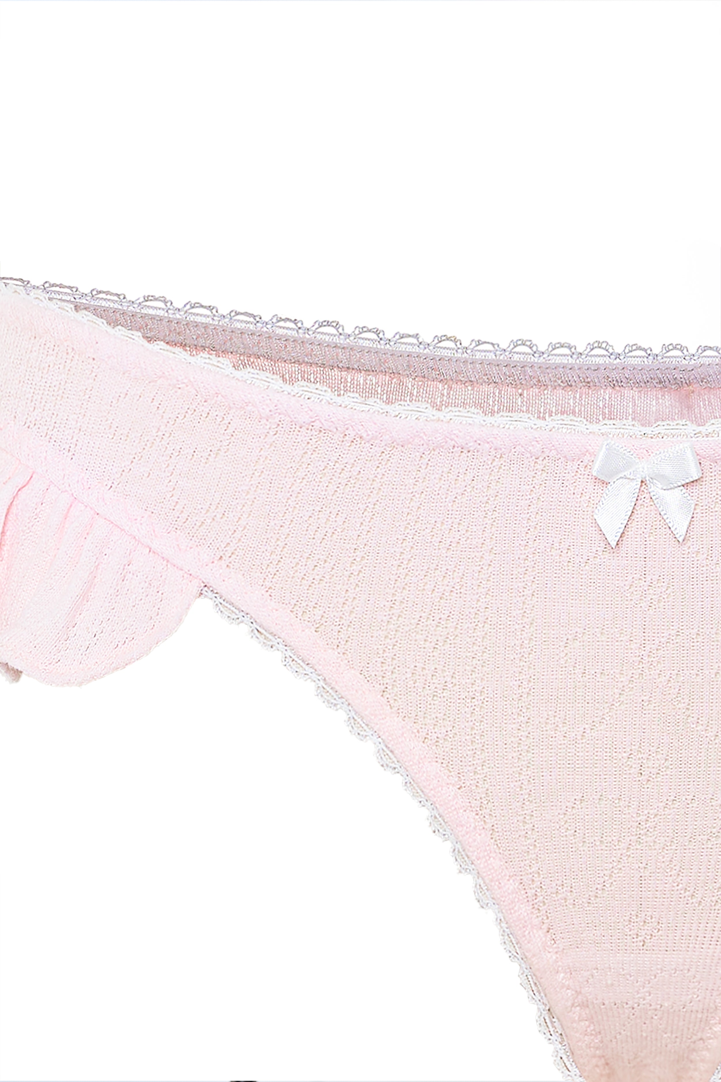 Mix comfort and sass with the Bambi Ruffled Thong. Designed in our custom pointelle fabric, it’s detailed with playful ruffles, lace trim and our signature bow detailing.